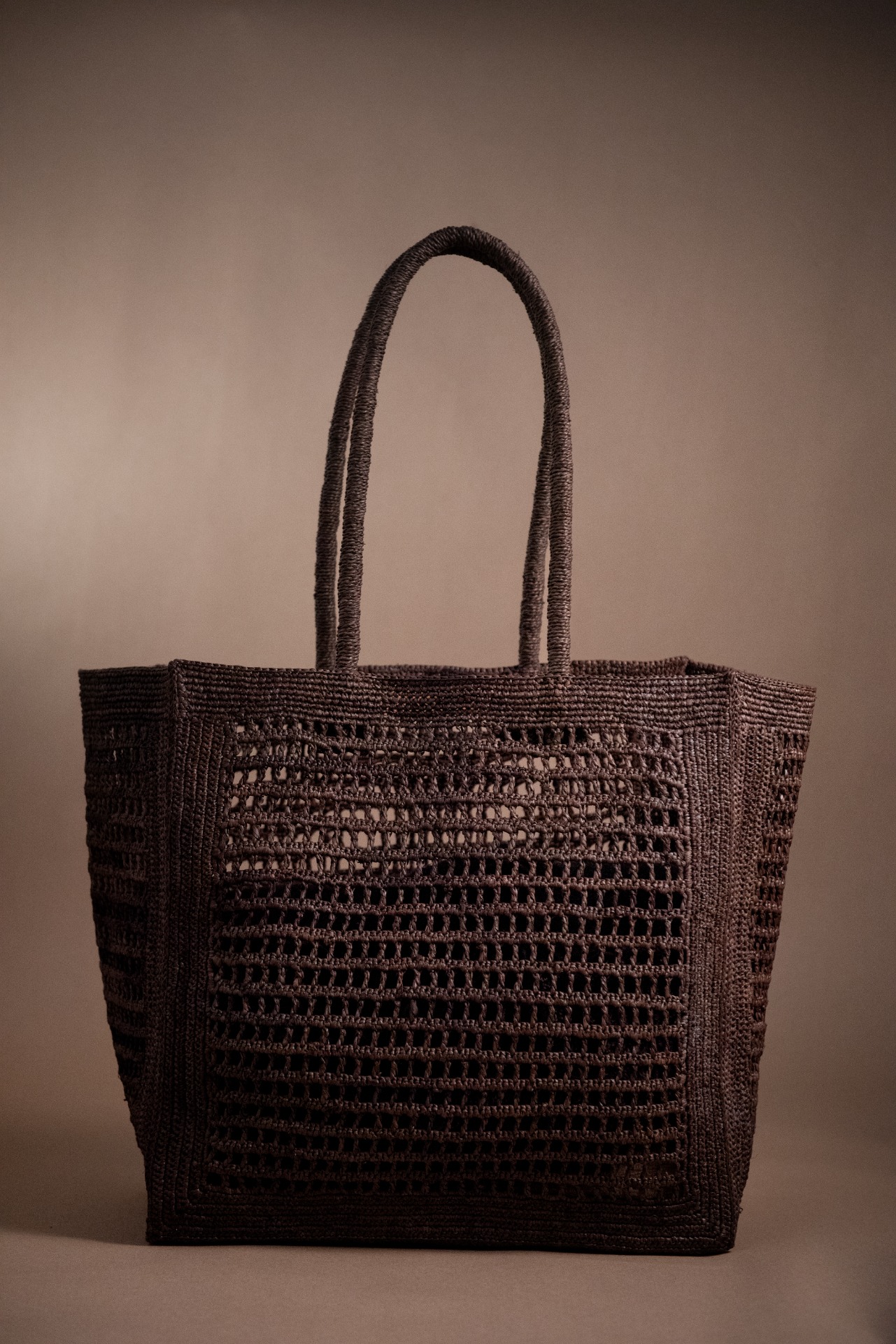 The KOMBA tote is a spacious handbag, this time in a warm café brown shade, naturally dyed using real coffee. Designed to hold everything you need while highlighting your style in any situation, its eye-catching openwork design adds an elegant, breathable texture.