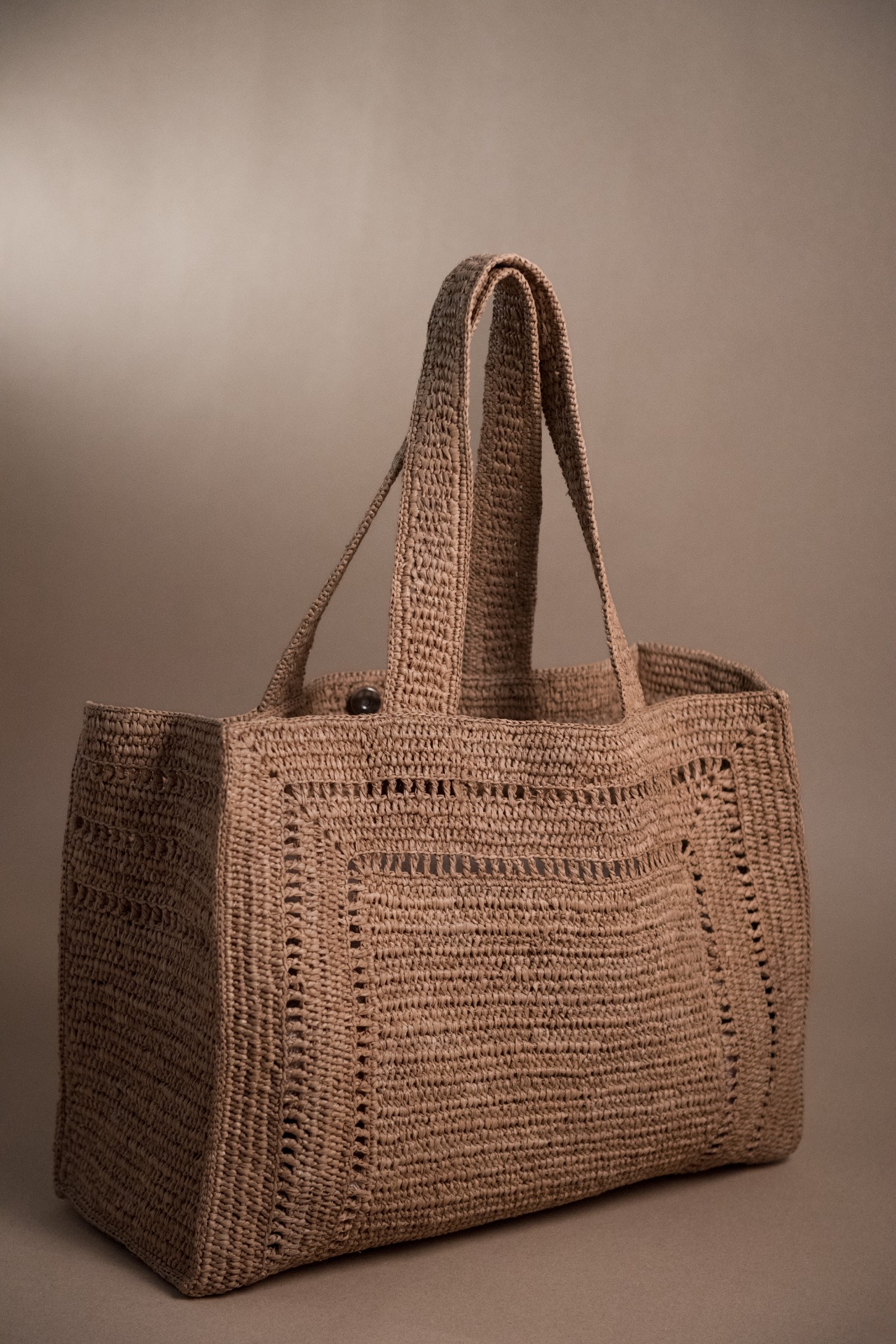 Díky ručnímu háčkování rafie se uvedené rozměry a barevný odstín mohou u každého kousku mírně lišit. Můžete si tak být jistá, že vaše kabelka NATTE bude stoprocentní originál.